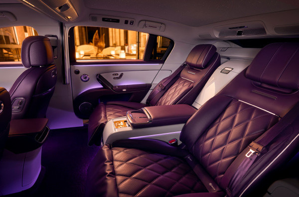 豪華配置層面,尊界S800車身尺寸達5480×2000×1542mm,軸距3370mm,提供行政四座與總統級空間布局。后排雙零重力座椅支持148.5°躺角調節,搭配43揚聲器音響系統與智能可變星空頂,營造沉浸式座艙體驗。車輛還配備電子外后視鏡、智慧電動門、隱私聲盾2.0等創新配置,整車手工工藝覆蓋水晶裝飾、金屬鑄造及皮質軟包等細節。