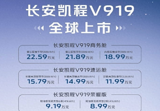 6月26日,“陸地航班﹒V你而來 —— 長安凱程V919全球上市發布會”在重慶舉行。全球首款純電動后驅寬體輕客、首款K01架構商用車型、首款新央企數智商用車、首款接軌乘用車體驗輕客——長安凱程V919,以“四大首發”實力強勢上市,憑“陸地航班”之空間和舒適度,顛覆燃油輕客市場,售價為8.99-22.59萬元,為新世代生意人帶來全新的“低能耗、大收益”解決方案及智慧物流新生態。