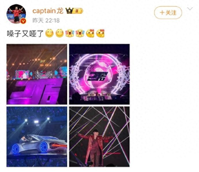 6月29日晚,乒乓球奧運冠軍馬龍發布自己觀看林俊杰演唱會的照片,并配文“嗓子又啞了”。