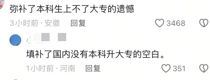 有網(wǎng)友神評:“彌補(bǔ)了本科生上不了大專的遺憾”。