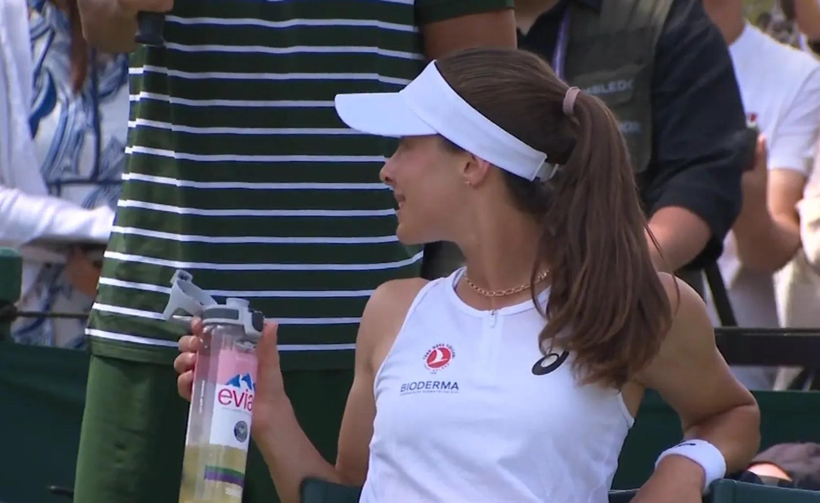 隨后雙方你來我往,王欣瑜發出了兩記Ace球,但也再次出現了一個雙誤。雙方都有破發情況出現,王欣瑜在局數領先的情況下被森梅茲6比5實現了局分上的反超,同時也來到了森梅茲的發球勝盤局。森梅茲抓住了機會,保發成功,以局分7比5逆轉贏下了首盤。在盤間,王欣瑜要了個醫療暫停,似乎出現了傷病情況。
