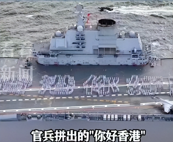 山東艦官兵在甲板排出"香港你好"這種字,后來變成"國安家好",讓香港市民感動落淚。