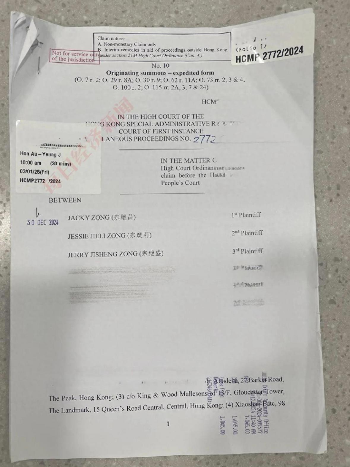 據曝光的文書顯示,宗氏三兄妹主要針對一筆108.5萬美元的款項提出質疑,并要求法院指示宗馥莉說明這筆款項的最終用途和流向。 法院已正式指令宗馥莉需在期限內對這筆款項的去向做出詳細說明。
