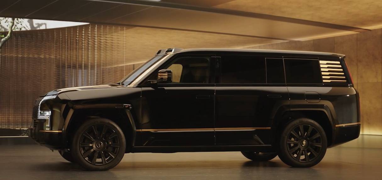 新車還采用了全新的23英寸八孔鍛造輪圈,造型更加奢華,同時降低風阻。車輛尾部不再配備外掛式備胎,尾門也改為上下對開式設計,上尾門開啟占地面積更小,下尾門打開后可以乘坐兩個成年人,最大承重200kg,可露營觀景。
