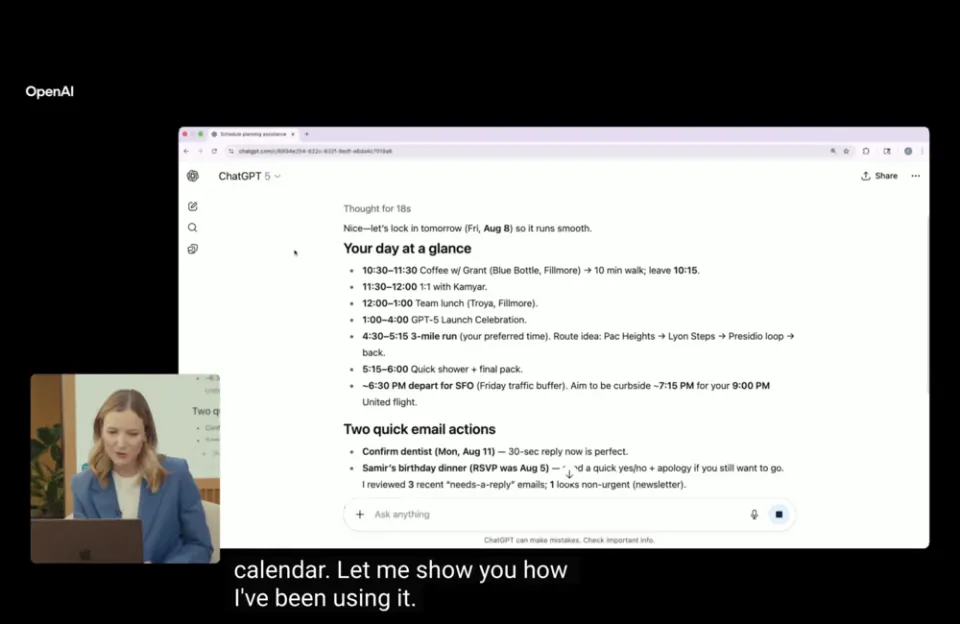 在現場展示中,GPT?5 首先展示了一個“超級個人助理”的身份: