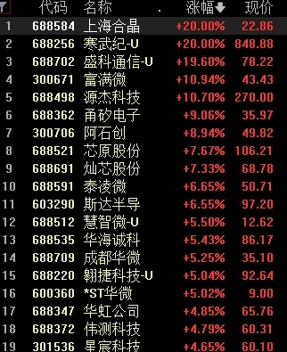 今日上午盤中,DeepSeek之一的每日互動突然直線拉升,一度漲超12%,隨后上海合晶、寒武紀等芯片股也紛紛大漲,午后A股芯片股繼續拉升,其中寒武紀封住20CM漲停,報848.88元/股,總市值達到3551億元。此外盛科通信、富滿微漲超10%,阿石創、燦芯股份等漲超5%。