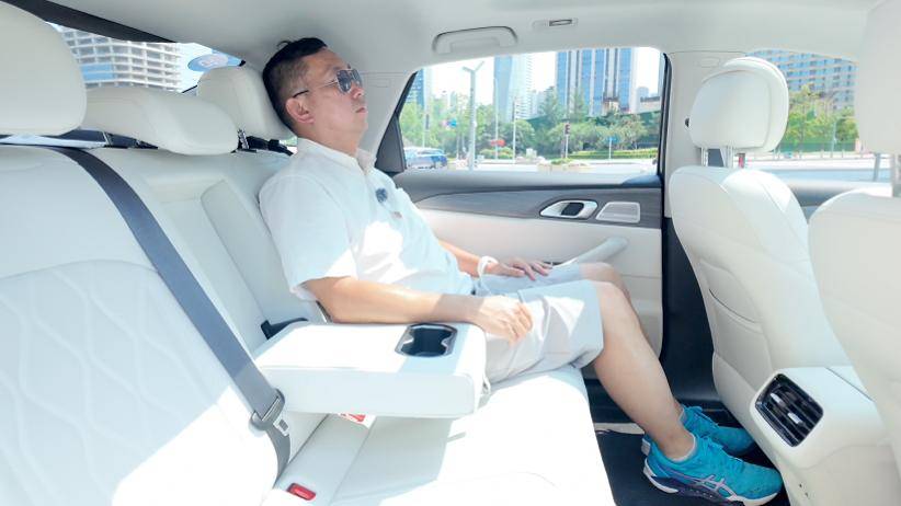 不過外觀并非銀河A7的賣點(diǎn),用車體驗(yàn)才是。其一是空間,它的車長做到4918mm,而軸距已經(jīng)來到2845mm,很實(shí)用,比凱美瑞/雅閣的軸距都要更長。以175cm的體驗(yàn)者作為參考,后排腿部空間非常充裕,大腿承托到位,頭部空間有一拳的余量。它采用全景天窗的形式提升開揚(yáng)感,同時(shí)也周到的同步給到遮陽簾。因?yàn)槭遣寤靹?dòng)力的優(yōu)勢(shì),其地臺(tái)做到全平,后排滿座三人也不會(huì)很憋屈。