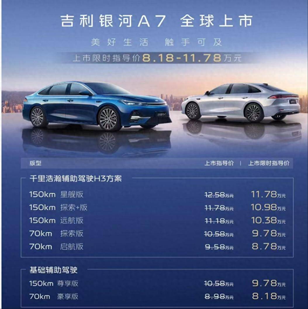 現(xiàn)在,10萬左右入門插混中型家轎市場(chǎng)可以說是比亞迪一家獨(dú)大,一臺(tái)秦L DM+一臺(tái)海豹06 DM頂天立地,6月份加起來拿下了超4萬的銷量。如此大的終端量,恰恰證明了該細(xì)分市場(chǎng)的高需求量。如果你期待有一個(gè)新選擇,機(jī)會(huì)來了,吉利銀河A7上市,全系7個(gè)車型,指導(dǎo)價(jià)8.98萬-12.58萬元,限時(shí)價(jià)8.18萬-11.78萬元。那么,作為市場(chǎng)新成員,它的產(chǎn)品力如何?對(duì)比競(jìng)品有何優(yōu)劣?咱們來看看!