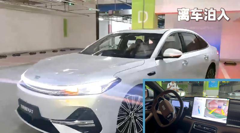 我們還體驗(yàn)了它的離車泊入功能,選擇車位后下車,車輛就很自覺的自己進(jìn)入的車位里,對(duì)新手司機(jī)來說太友好了。