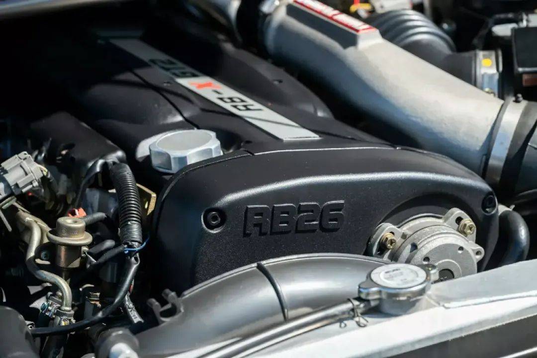 日產曾推出過少數幾種顏色的Skyline GT-R 400R,這臺車采用的是暗灰色珍珠漆涂裝,車身側面保留原廠白色拉花,輪轂也仍是原廠白色款式。自出廠以來,這臺車僅行駛了7093公里,外觀狀態極佳,車漆、飾條和細節部分幾乎仍如出廠時那般嶄新。