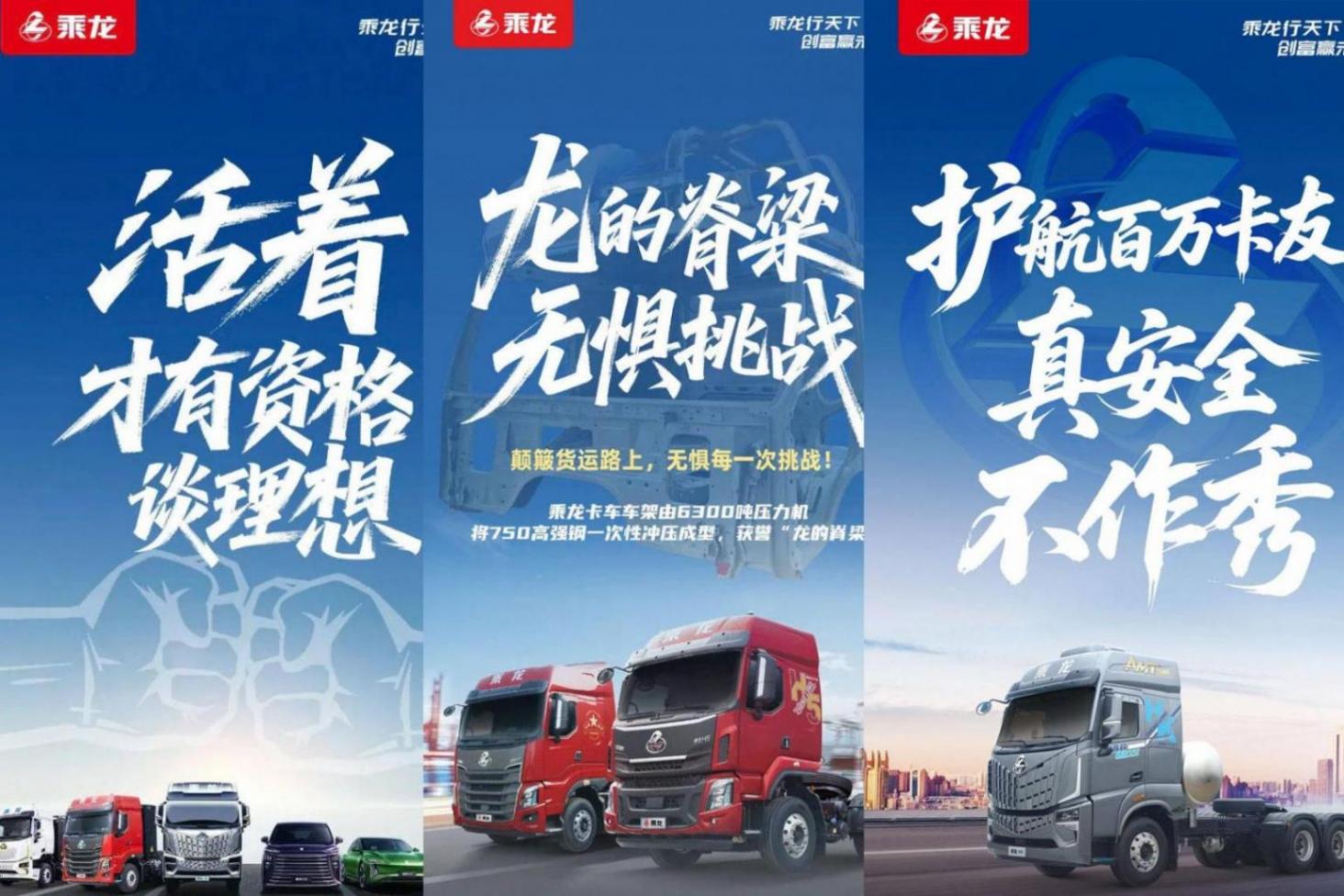 8月3日,理想汽車和中國汽研相繼發表聲明,承認“測試所用東風柳汽乘龍品牌二手卡車僅作為移動式壁障物”,東風柳汽并沒有圍繞這個聲明進行直接回擊,而是圍繞著自身安全發布了一系列有內涵的海報,比如“龍的脊梁 無懼挑戰”、“護航百萬卡友 真安全,不作秀”。在此之前,東風柳汽還發布了“安全不是空口無憑的理想”、“活著,才有資格談理想”等海報,暗示了安全是生存的基礎,不應將安全測試當作營銷工具。