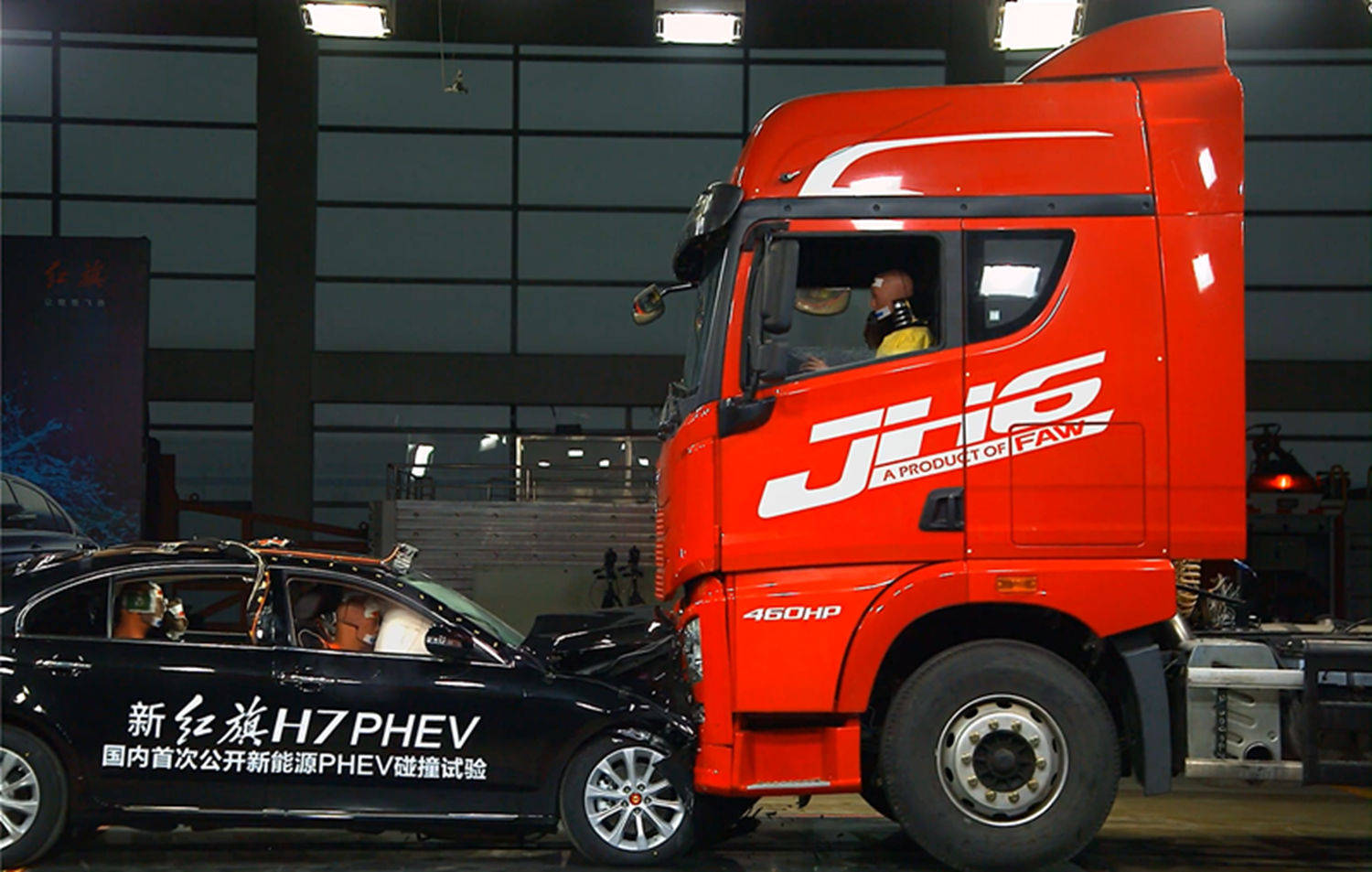 理想汽車之前,一汽紅旗也搞過類似的碰撞測試。2017年底,一汽紅旗H7 PHEV進行了對撞解放JH6卡車的測試。不同的是,一汽紅旗H7 PHEV這次測試嚴謹標注了測試車的載重、速度等參數,坦承目的是模擬極端風險。盡管測試結果紅旗轎車受損明顯更嚴重,但符合客觀規律和認知常識,其安全性仍獲得了公眾認可。