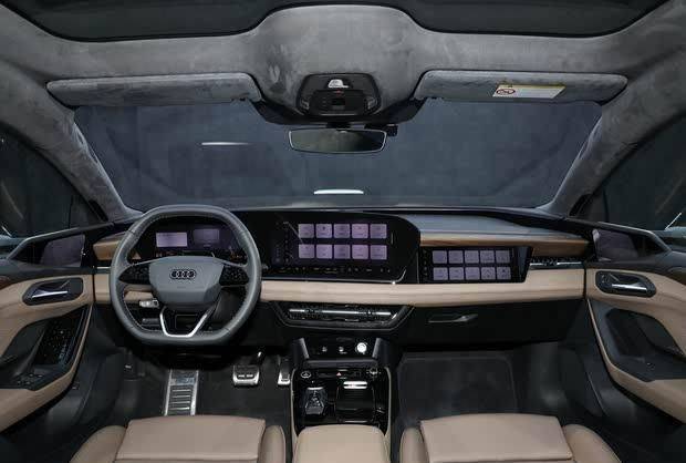 從外觀來看,國產版A6L e-tron進行了本土化調整。前臉采用大面積黑化設計,將激光雷達巧妙地融入其中。分體式大燈組支持8種日行燈圖案變換,配合創新的電控門把手和電子后視鏡,展現出強烈的科技感。車身尺寸達到5073/1942/1522mm,軸距為3076mm,搭配20英寸輪轂,整體造型動感十足。