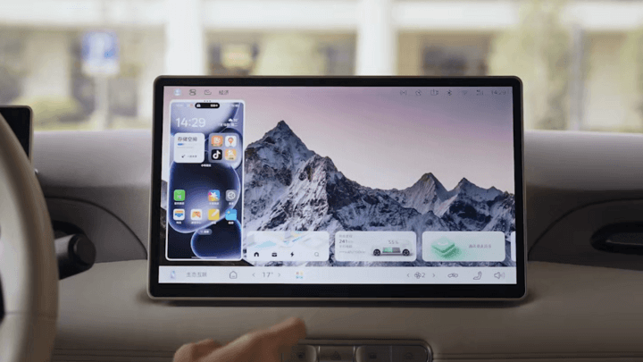 第三個變化,是座艙升級了新系統。此次新車首發搭載OPPO智行手車互聯系統,硬件部分采用高通8155芯片,支持兼容ios、安卓等主流手機操作系統,功能方面支持語音備車,即通過移動端語音指令,車輛提前執行空調、導航等任務信息,另外車端不用預裝APP,移動端數據軟件可以直接流轉至中控屏,OTA后還將解鎖感應控車卡片和接力導航等功能。