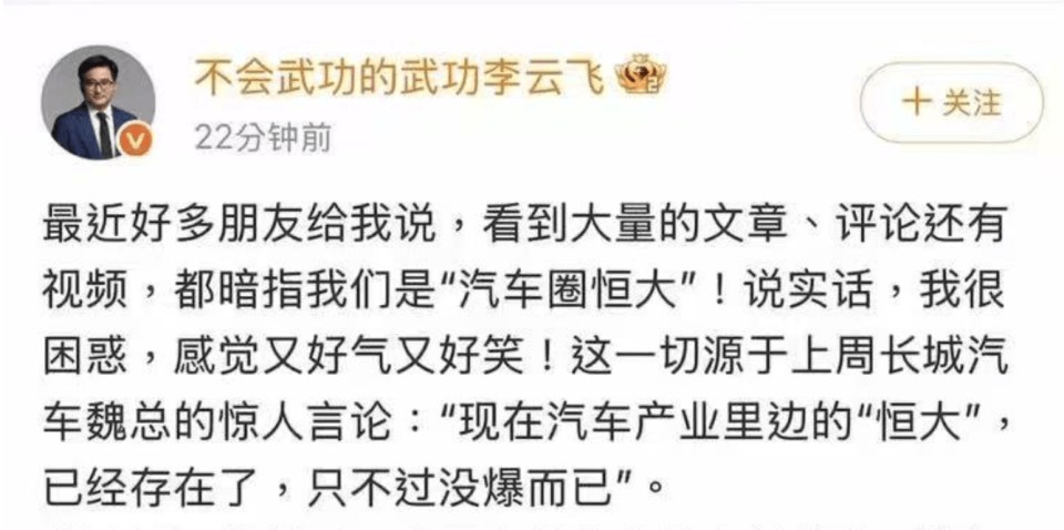 而李云飛在社交平臺上,有一個用了15年的ID名稱“不會武功的武功李云飛”,除了賬號名稱底下會有比亞迪品牌和公關(guān)處總經(jīng)理的認(rèn)證,大家從ID名稱上,是很難察覺到李云飛和比亞迪的關(guān)系。我們沒有接觸李云飛的時候,也對這個ID名稱非常好奇,不會武功的武功李云飛,那你到底是會武功,還是不會武功?