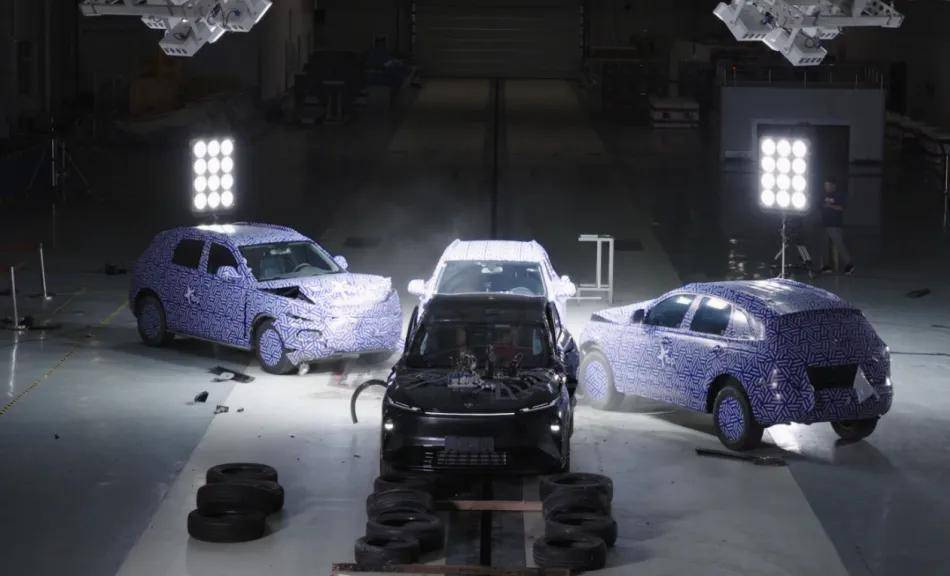 當然,指標參數是一方面,實戰測試則更能體驗風神L8在整車安全上的造詣——在中汽中心全網首次真實場景三面連續碰撞測試中,風神L8模擬遠超常規安全測試的十字路口交通事故,整車接連遭受正面+側面+追尾三臺時速55km的子彈車的連續撞擊。而結果也極具參考意義,A/B/C/D柱結構未失效,乘員艙保持完整、氣囊正常彈開、電池包無起火無冒煙、車門正常開啟,各項指標均達標,更是獲得中汽中心“TOP Safety 2025安全性能類挑戰證書”。