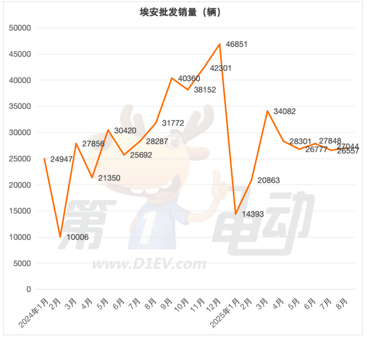 埃安8月銷量為27044輛,盡管環(huán)比7月微增 1.8%,但同比下降23.5%的數(shù)據(jù),表明其正面臨顯著的增長(zhǎng)瓶頸。從企業(yè)自身來(lái)看,埃安的產(chǎn)品布局相對(duì)集中在中端市場(chǎng),而該市場(chǎng)是新能源汽車競(jìng)爭(zhēng)最激烈的領(lǐng)域之一,比亞迪、吉利、長(zhǎng)安等車企均在此投入大量資源,導(dǎo)致埃安的市場(chǎng)空間被不斷壓縮。