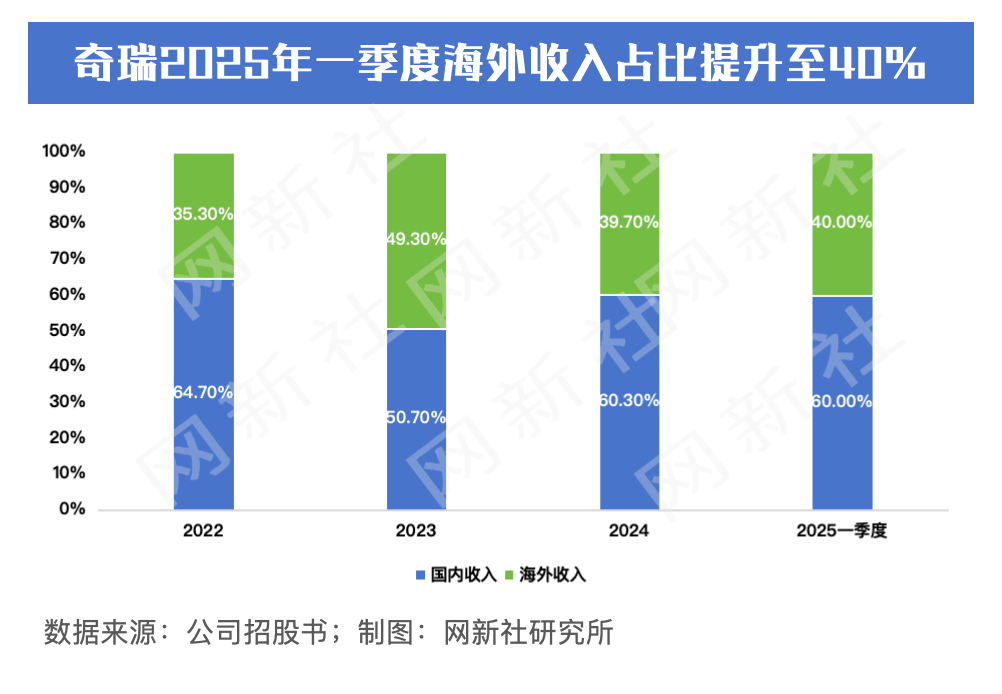 奇瑞近年來重點推進新能源業務發展,2025年第一季度新能源業務收入占比已提升至30%。在出海方面,奇瑞自2001年首次出口汽車以來,已連續22年保持中國自主品牌乘用車出口第一。截至目前,公司產品已銷往全球100多個國家和地區,2025年第一季度海外收入占比達到40%。