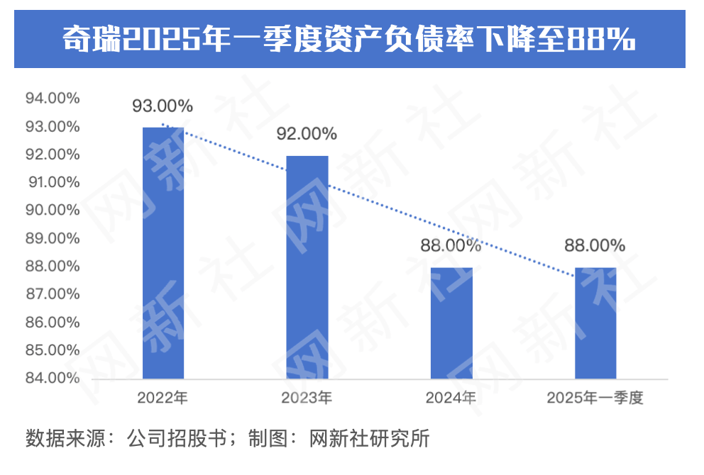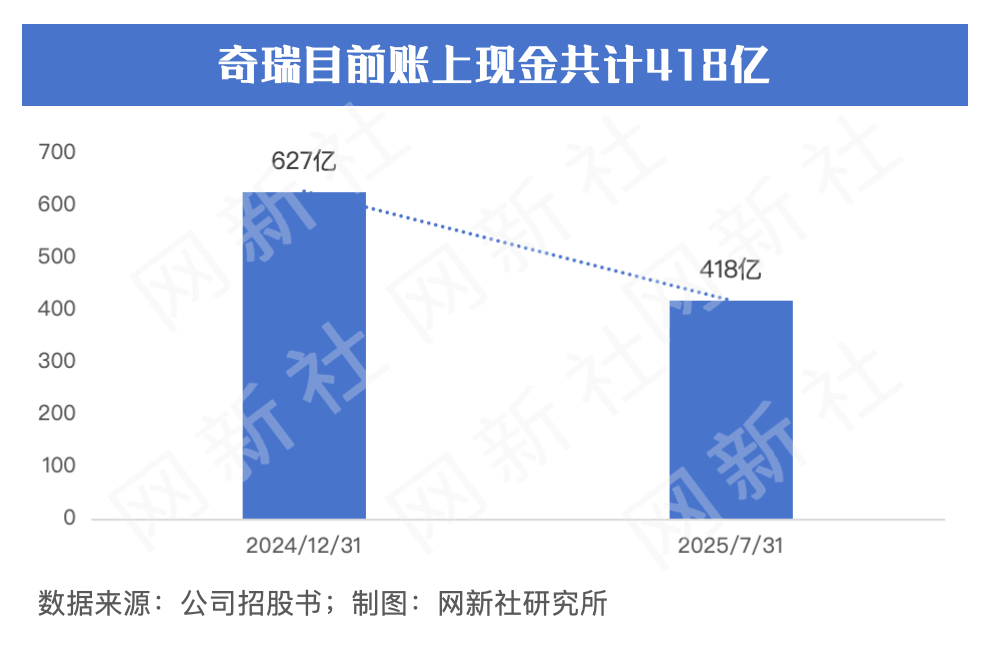 盡管業績表現亮眼,奇瑞汽車也面臨一些挑戰。公司2025年一季度毛利率為12.4%,較2023年的16%有所下滑。資產負債率雖從2022年的93%降至2025年一季度的88%,但仍處于行業較高水平。截至2025年7月31日,公司現金儲備為418億元,較2024年底的627億元有所減少。
