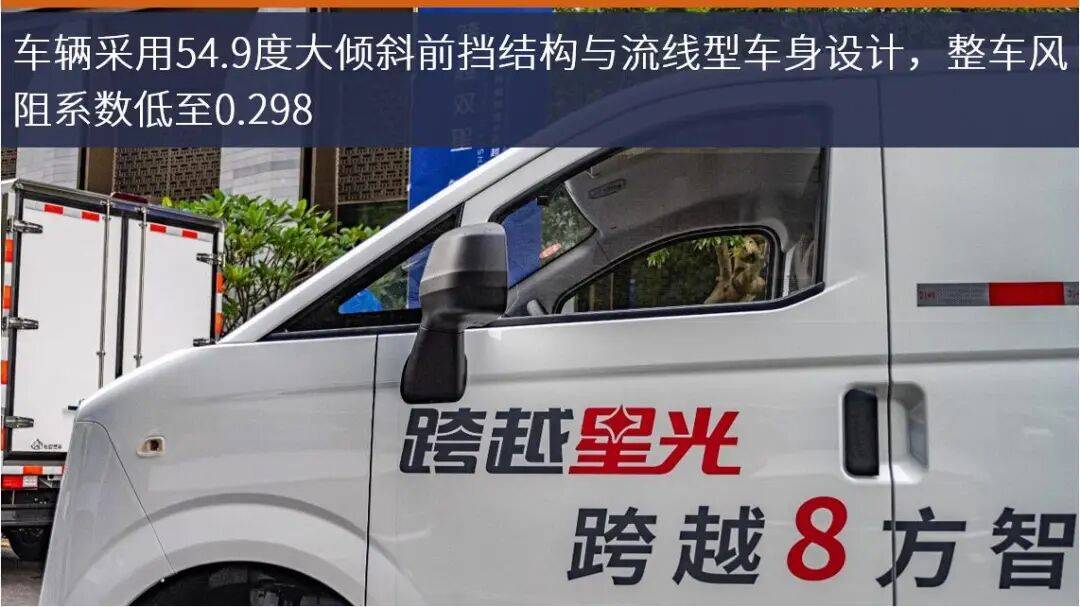 同時,跨越星光采用的是54.9°大傾斜前擋結構及流線形外觀設計,整車風阻達到0.298,低于同級平均水平,達到乘用車級別。