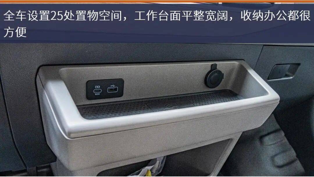 首先是空間利用率:全車設置25處置物空間,小到票據(jù)、水杯,大到工具、文件袋,都能找到專屬存放位置;工作臺面平整寬闊,無論是用電腦辦公還是填寫貨運單據(jù),都能輕松操作。