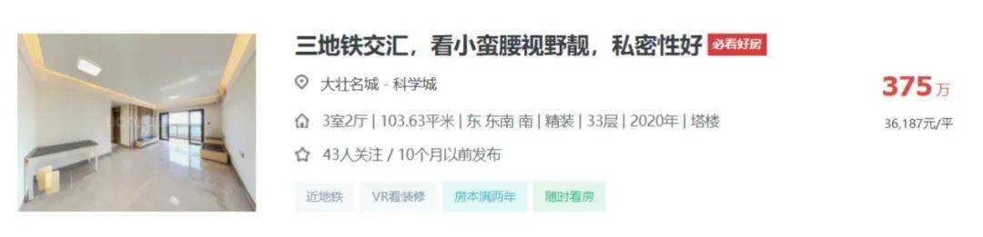 9月的一則成交數據,讓廣州黃埔科學城核心地段“網紅盤”大壯名城刷新了價格底線:一套104平方米的二手房,以2.96萬元/平方米單價成交,較高峰時跌幅超過50%。
