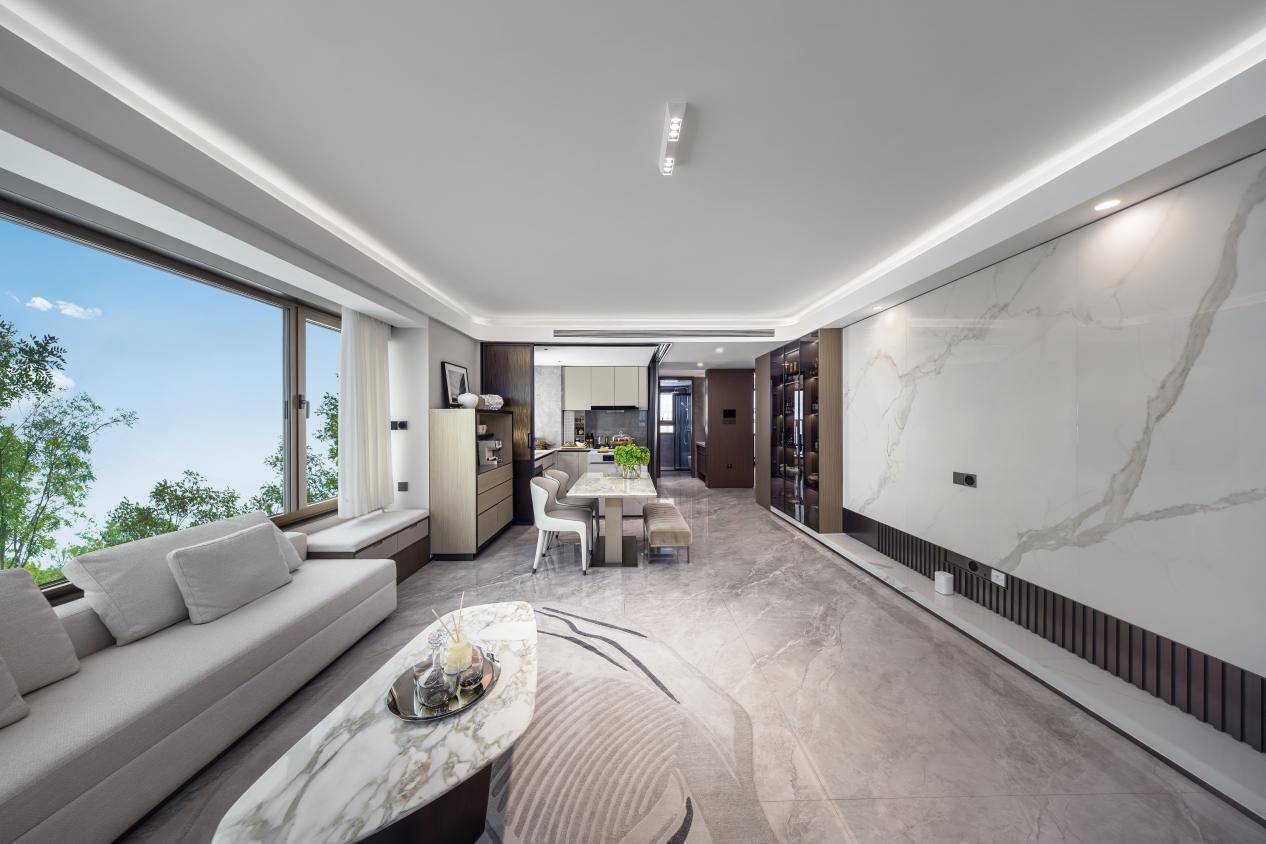 走進實景樣板間,才能真正理解什么是「第四代住宅」。LDK一體化寬廳,徹底打破傳統空間的割裂感。客廳、餐廳、廚房流暢銜接,形成家庭成員自然互動的核心公區。在這里,媽媽在廚房準備晚餐時,依然可以關注在客廳玩耍的孩子;爸爸在書房辦公時,依然能參與家人的閑聊對話。