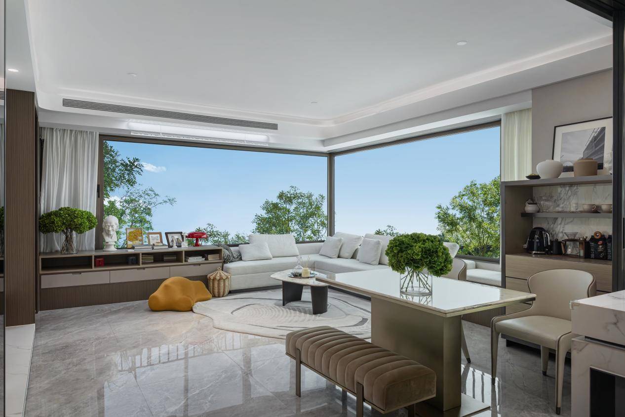 超大窗墻比設計,不僅為了美觀,更將室內采光的無限拓展。部分戶型還創新采用真空隔音窗,實現隔音降噪、保溫節能的多重突破。當傳統住宅還在為「窗墻比」糾結時,元啟已然讓建筑本身成為會呼吸的藝術品。