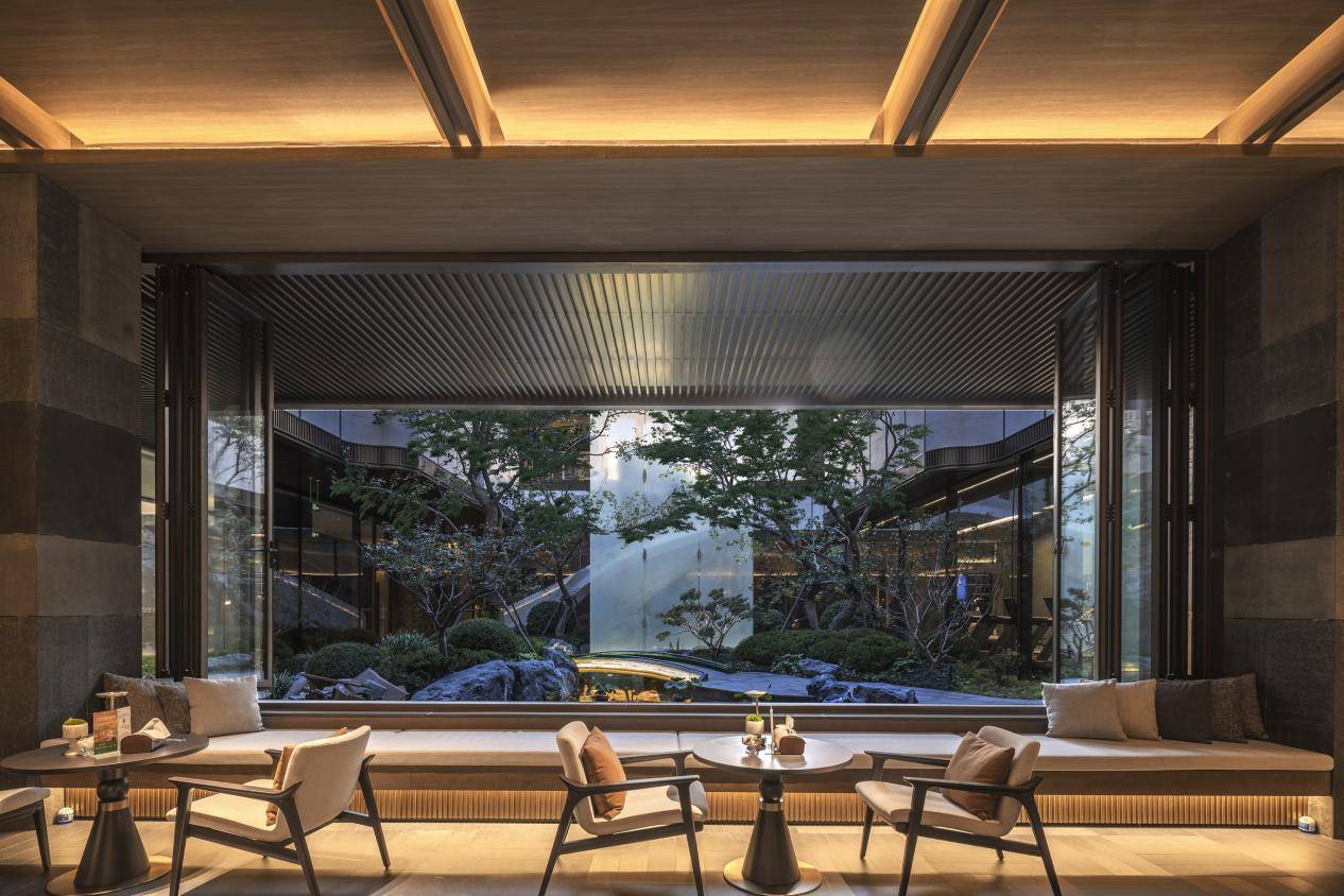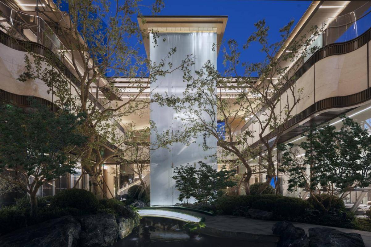 漫步其中,仿佛走進一幅流動的山水長卷。約11米高的飛泉疊瀑傾瀉而下,與靜謐的水院形成動靜對比;春日的櫻花漫道,秋日的楓林盡染……每個季節都有獨特的景致變化。這不是簡單的造景,而是將畫境轉化為可游可居的現實。