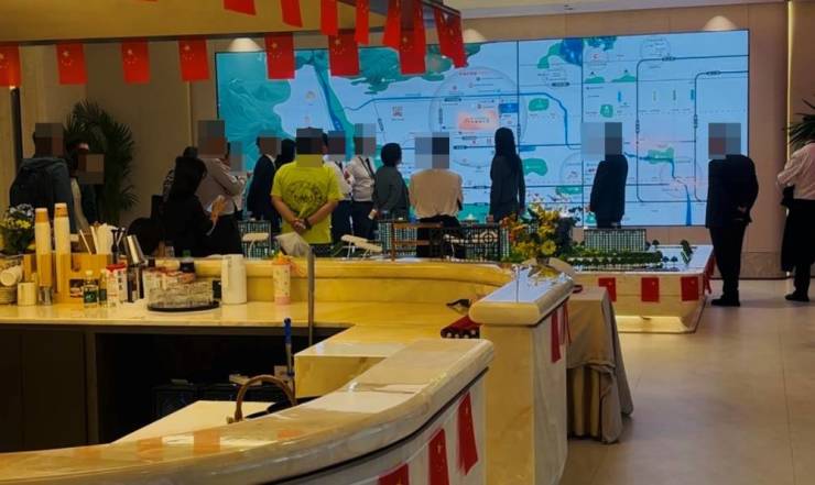 下午14:17,某新開盤項目售樓處到訪人員正在看沙盤