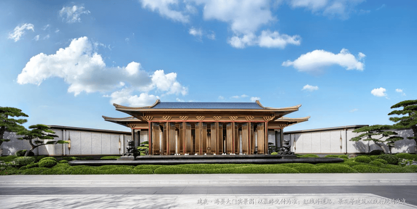 福海聚寶、瑞獅佑安、玉雕門鈸等門庭十珍,讓大門終成一部可居可賞的立體文化珍藏。目前實(shí)景已1:1超越效果圖兌現(xiàn),廣受參觀者贊譽(yù)。