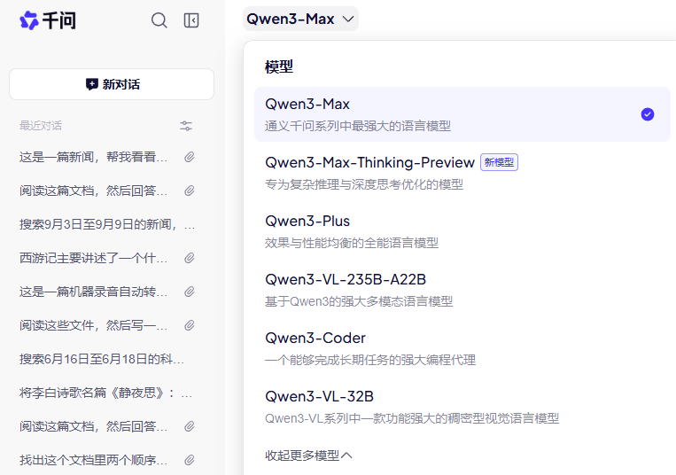 為何能夠?qū)崿F(xiàn)如此之多的功能選項?貝殼財經(jīng)記者發(fā)現(xiàn),在千問APP端,可選擇的模型為Qwen3和Qwen3-Max,但在千問PC端,可選擇的模型數(shù)量則有6個,涵蓋深度思考、多模態(tài)、編程、視覺語言等多個領(lǐng)域。