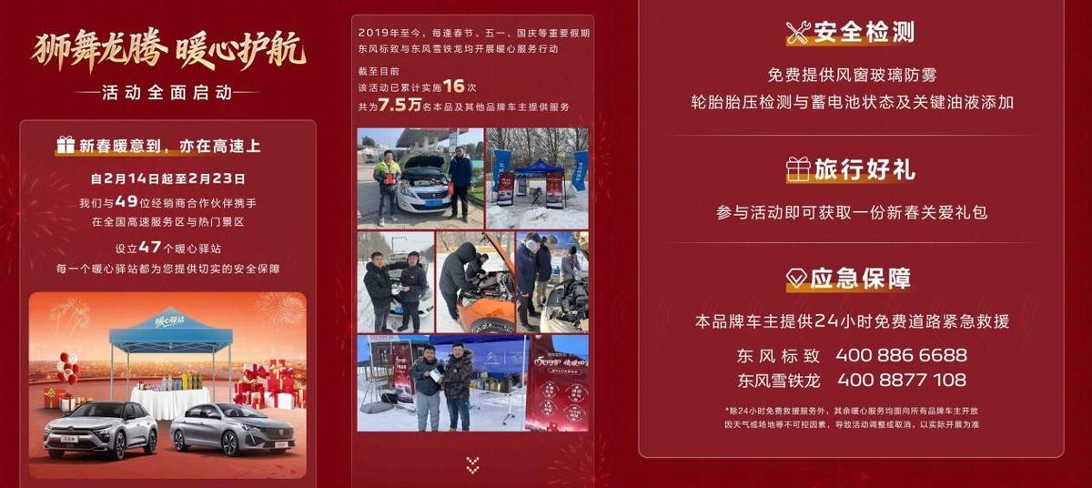 東風標致與東風雪鐵龍的選擇有些不同。他們確實在春節推出了“高速關愛服務”、購置稅減半福利、首批凡爾賽車主的0首付升級方案,但這些動作都被納入了一個更大的框架:央視傳播與終端服務的深度聯動。