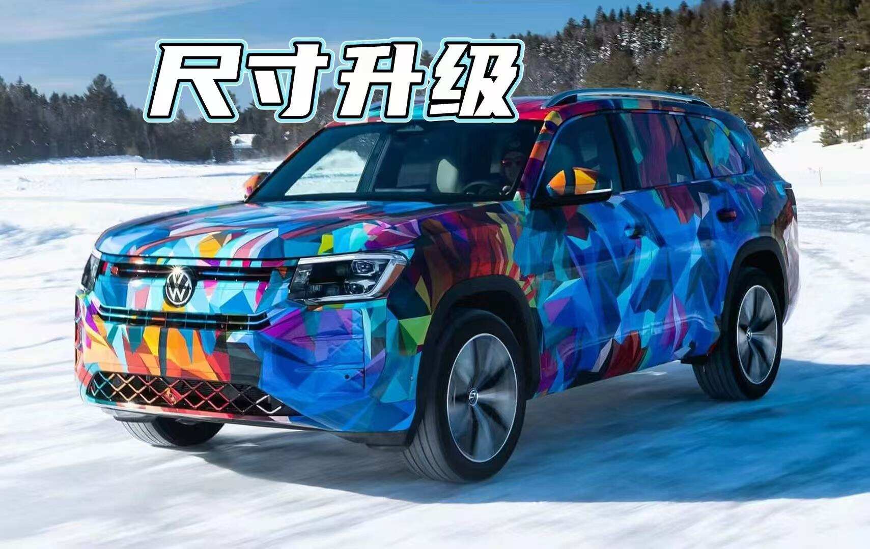 車身寬度和高度也有望同步增長。設計方面,新一代Atlas仍將延續熟悉的整體輪廓。目前原型車仍覆蓋著彩色偽裝貼紙,細節尚未完全公開。不過,參考途昂仍具有一定意義,盡管美版車型在進氣格柵和燈組設計上預計會有所不同。