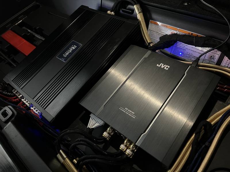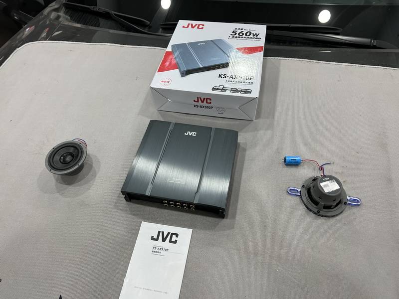 原車主機(jī)解析力較差,導(dǎo)致音頻信號質(zhì)量不是很理想。所以技師為汽車音響系統(tǒng)添加了一臺日本JVC KS-AX910P音頻處理器,它支持多聲道輸入,且具有EQ調(diào)音功能,可以對每聲道的聲場延時做精準(zhǔn)調(diào)節(jié),充分滿足車主個性化的聽音需求。