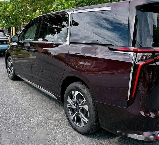 車身側面,流暢的線條勾勒出優雅的輪廓,修長的車身搭配上獨特的輪轂設計,展現出一種動感與穩重并存的氣質。與埃爾法相似的懸浮式車頂設計,為整車增添了一份時尚與靈動,同時也提升了車內的空間感和采光效果。車窗周圍的鍍鉻裝飾條,以及車身下方的鍍鉻側裙,進一步彰顯了其豪華的品質。
