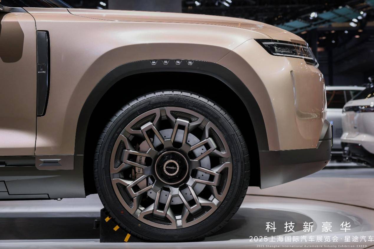 在性能方面,天璣基于E0X_L高性能平臺開發,融合了多項尖端技術。將搭載奇瑞集團最新研發的7D智能全地形系統,擁有帶AI預瞄控制、跨域融合底盤控制系統、全主動懸架、7o后輪轉向、轉彎直徑小于10.8m、帶限滑差速的電驅,擁有輪邊6,700N·m最大驅動力。據介紹,天璣的涉水深度高達900mm,可實現最大45度爬坡性能,媲美路虎衛士的水平。